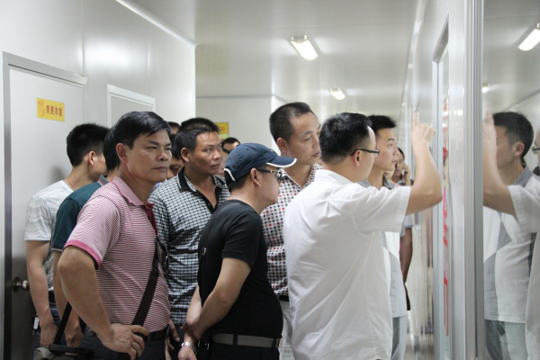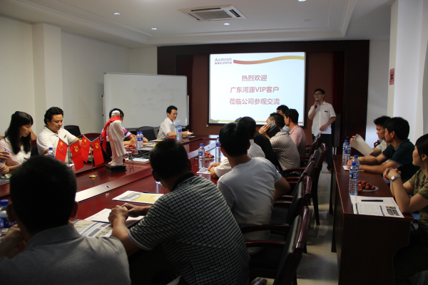 2014年06月11日,公司迎来了广东省的尊贵客人。在公司副总张浩超的陪同下,客户们参观了公司展厅,对奥姆龙的企业文化和发展历程有了初步的了解。接着,深入公司的生产车间,在生产部曾经理的耐心介绍下,客户们对我公司的技术水平、现场管理及工艺流程等给予了高度评价。参观行程结束后,公司还为客户一行,准备了两场精彩的讲座。首先,由董事长林振雁带来《养猪业的良师益友》,他不单站在一个兽药厂家的角度,还以自己也是猪场老板的身份举例,侃侃而谈,宾客们掌声此起彼伏,感同身受。接着,技术部郭总监针对“奥姆龙能为猪场做些什么”做了详尽的解释,客户们听的津津有味,时不时的在笔记本上记下,产品的使用时机与用法用量。培训结束以后,客户们纷纷表示不虚此行。