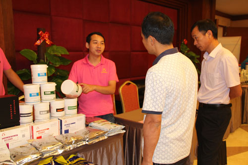 福建奥姆龙生物工程有限公司在会议现场展出了多种产品,受到养殖企业、养殖专业户和其他相关人员的广泛关注与热议。
