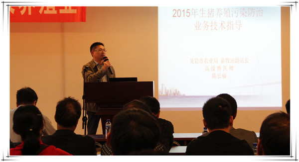 陈长福:龙岩市农业局畜牧站副站长,授课内容:《2015年生猪养殖污染防治业务技术指导》