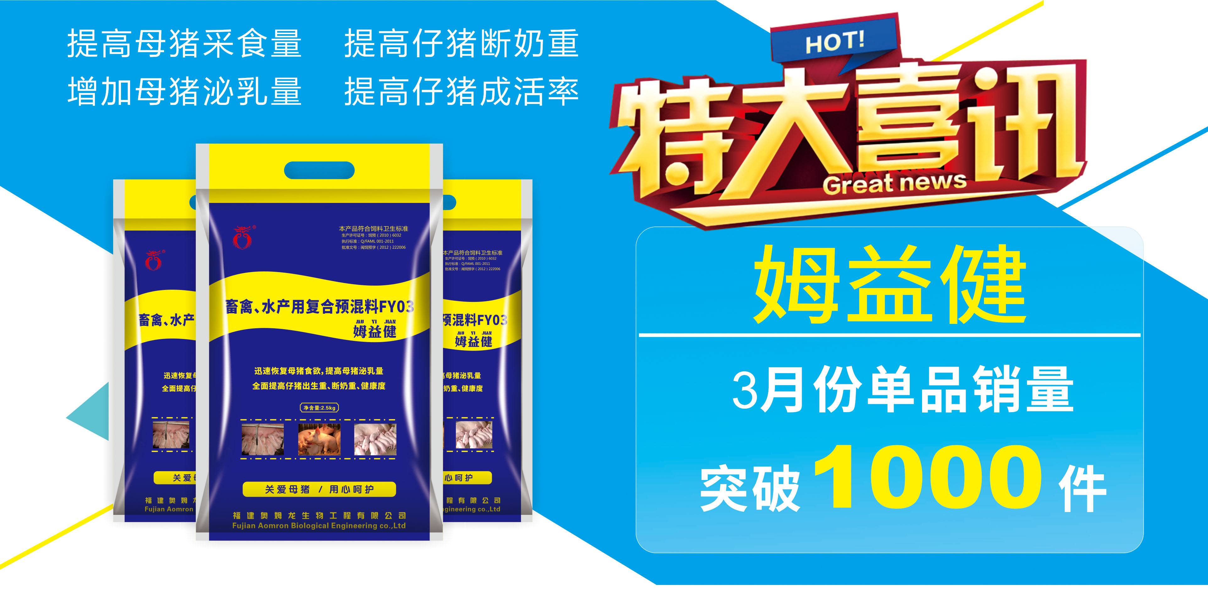 “姆益健”是由福建奥姆龙生物工程有限公司自主研发生产的新型微生态制品,是针对猪场出现的母猪泌乳性能下降、仔猪断奶重不理想的状况,结合实际生产情况开发的产品。在猪群易发腹泻的季节,奥姆龙收到客户反馈,在母猪饲料中添加了“姆益健”,仔猪群今年腹泻相比往年大大减少。“姆益健”如何发挥这样的功效我们不好妄下定论,但可以大胆推断,母猪食用“姆益健”后分泌的乳汁对预防仔猪腹泻起到了重要作用。