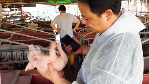 郭金权老师在科邦三友公司大型猪场进行技术服务