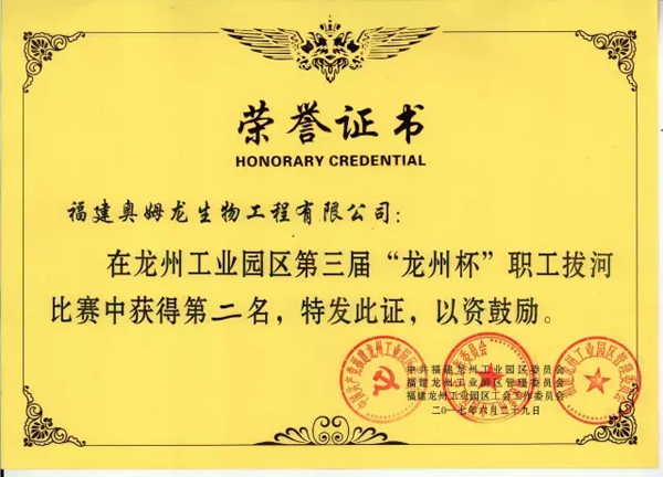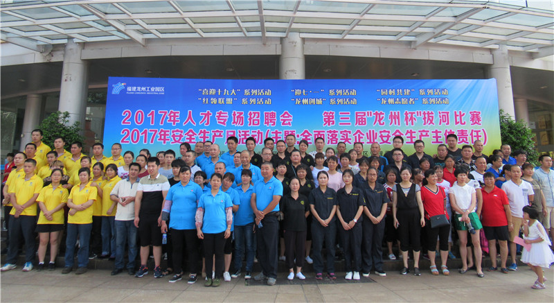 为丰富全体员工的精神文化生活,促进在职员工之间的交流,发扬团队精神,增强凝聚力,公司于2017年6月29日参加了福建龙州工业园区举办的第三届“龙州杯”拔河比赛。