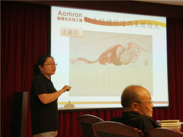 微生物研发中心主任邹柳讲述了《微生物及乳酸菌发酵知识》,畜禽饲料的精细化,人工合成的添加剂,长期滥用抗生素使得畜牧行业的养殖面临新的挑战,益生菌将在日后的畜牧养殖中扮演重要的角色。