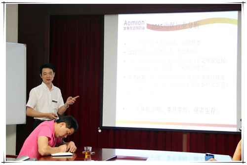 (销售部经理陈林进行销售技巧培训)