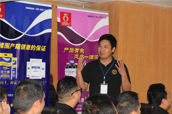 接下来由公司技术总监郭金权老师、微生物研发中心主任邹柳、技术部徐见光为销售精英们分别带来《公司优势产品介绍》、《益生菌与肠道》、《养猪之道》的专题分享。