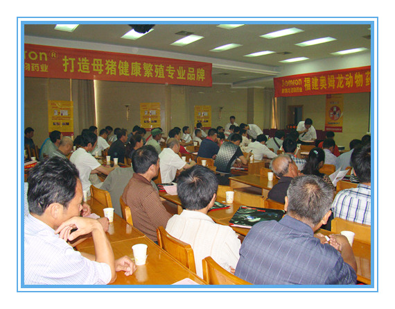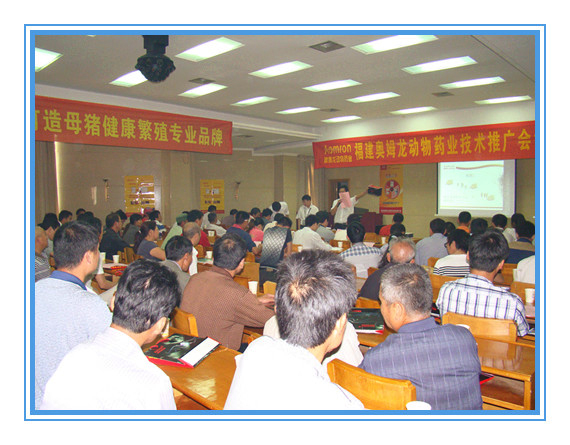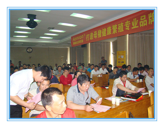 2012年5月31日,公司技术总监郭金权博士与华北销售总监程炎明在南昌新建县以会议的形势向养殖户推广母猪健康繁殖新技术,解答如何正确使用公司产品?;嵋橄殖∑杖攘?,养殖户踊跃参与互动,让养殖户更深入的了解奥姆龙在母猪健康繁殖方面定位的专业性和品牌性。