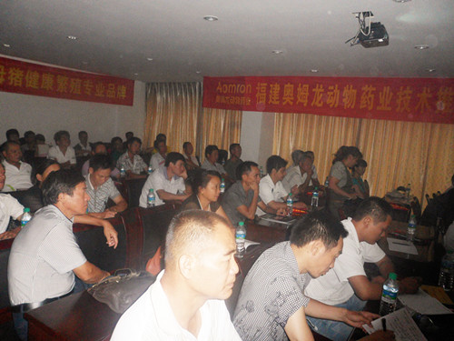 2012年7月12日上午9点,奥姆龙公司联合上高永润牧业黄清才在皇家商务宾馆二楼召开母猪健康繁殖专业研讨会,此次由福建奥姆龙动物药业技术总监郭金权老师主讲。