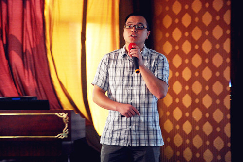 图四:林承佺经理讲课 《美系种猪育种与提高母猪生产性能关键技术》