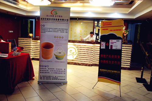 2012年9月18日,奥姆龙动物药业携手福建永诚华多,与汀州府(长?。┥习傥谎撑笥?span style="font-size:16px;">在中国红色革命的摇篮--汀州府金仁大酒店相聚一堂,共同探讨、交流、分享:打造母猪健康繁殖之——《非传染性繁殖障碍的有效防控》,就如何从饲养管理、品系改良、营养需求、疾病防控等多个方面来提高养殖水平、提升养猪盈利。