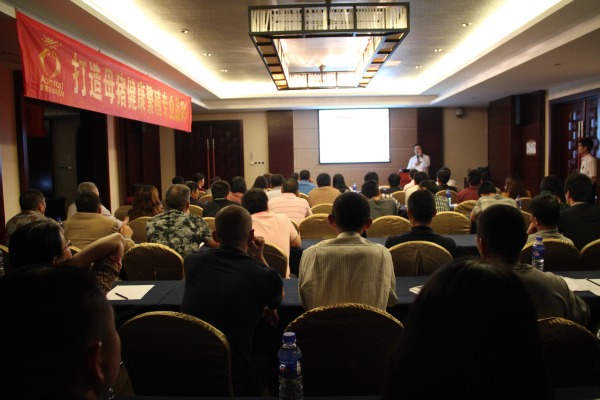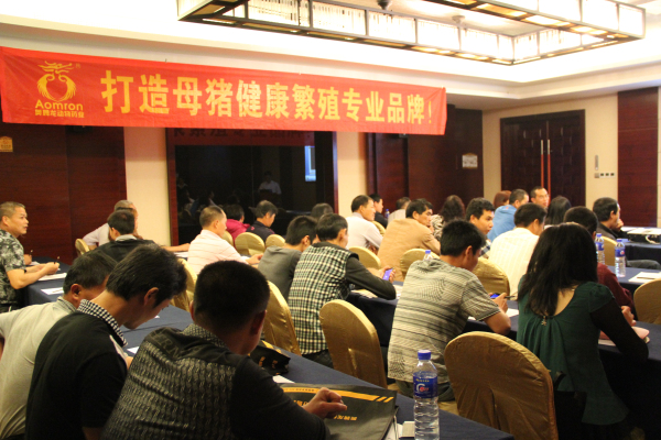 2014年4月7日,公司在福建漳平召开技术推广会议,会议在企划部吴经理的主持下拉开了序幕。紧接着公司技术部总监郭金权针对于“奥姆龙能帮助猪场解决哪些问题”进行了详细的讲座,会议现场互动氛围热烈,抽奖环节更是激动人心。