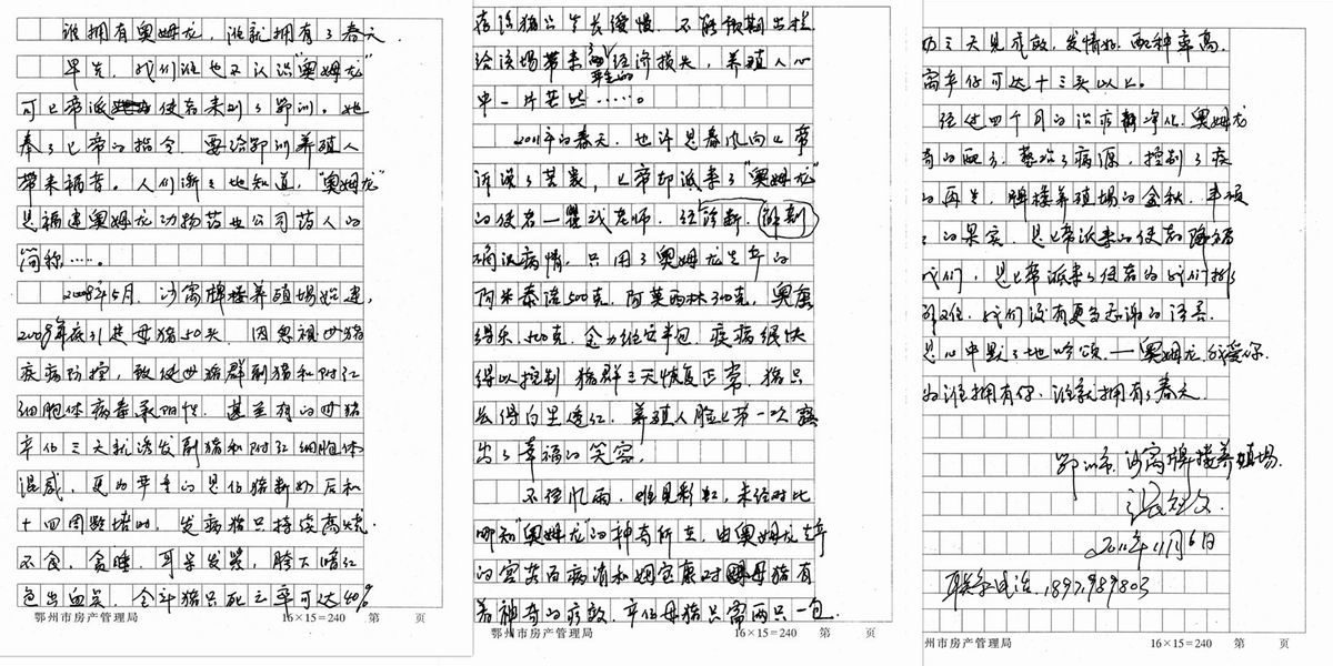 这封名为“谁拥有了奥姆龙,谁就拥有了春天”的诚挚感谢信是鄂州市沙窝牌楼养殖场的张应文先生寄来的,在其猪场正遭受严重的经济损失之际,公司的客户服务经理瞿武专程带去了奥姆龙公司的产品,张先生在感谢信中写到:“奥姆龙是上帝派来的使者,将福音给了我们……”