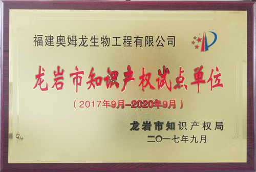 龙岩市知识产权局授予福建奥姆龙生物工程有限公司:龙岩市知识产权试点单位
