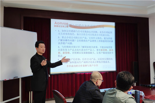 由技术总监叶?;鹘驳摹犊蒲茄芾怼?,旨在让各区域经理全方位地了解公司产品的优势,及主要的猪场疾病种类,对各区域经理开发市场提供了强有力的技术保障,培训深入浅出,博得阵阵掌声。