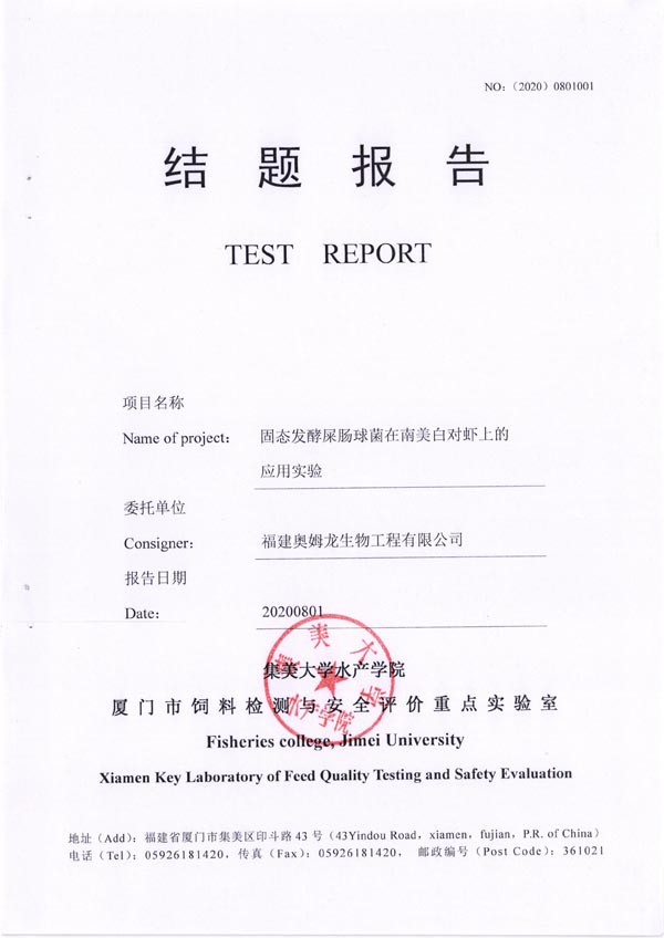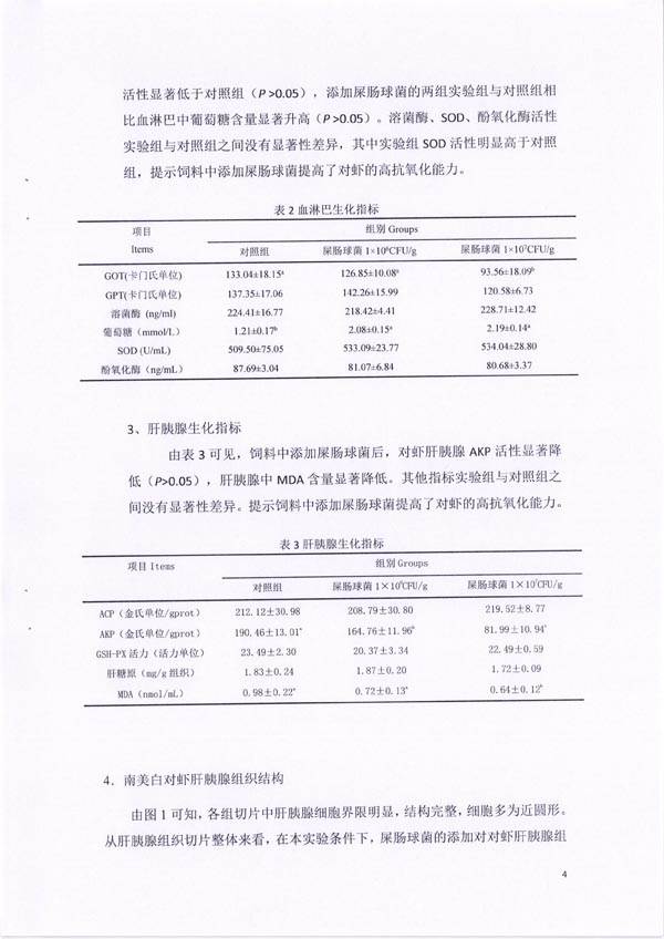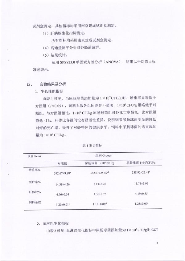 屎肠球菌在南美白对虾中的应用结题报告