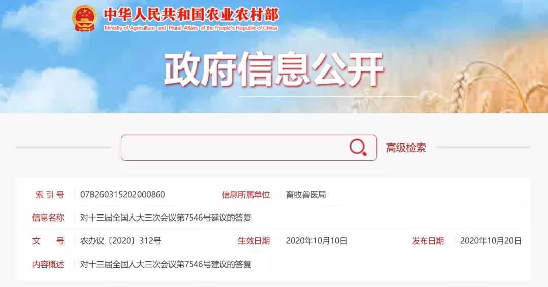 在十三届全国人大三次会议上,张莉等 4 名代表提出了关于促进兽药行业发展保障食品和公共卫生安全的建议(第 7546 号建议),经商科技部,农业农村部作出如下答复。