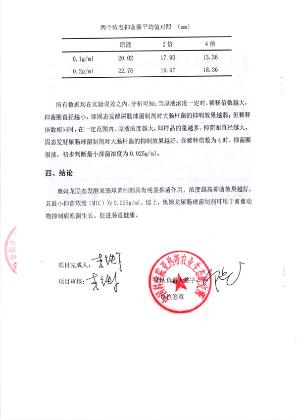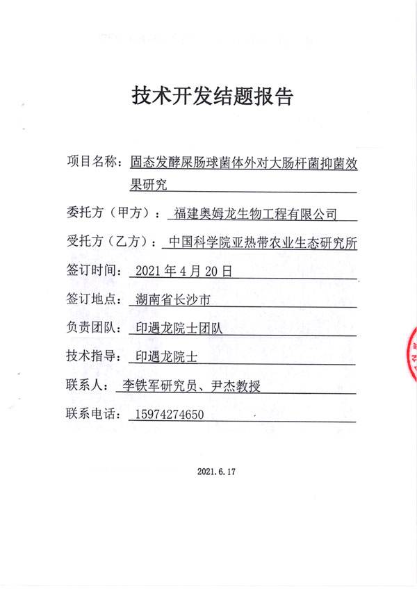 鉴于屎肠球菌的抑菌作用,我司于2021年4月与中国科学院亚热带农业生态研究所签订协议,对我司生产的固态发酵屎肠球菌体外对大肠杆菌抑菌效果进行研究。
