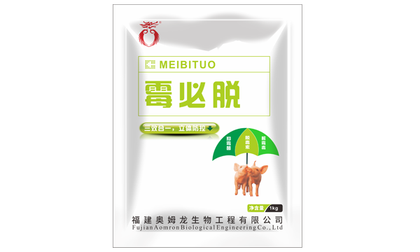 | 玉米、麸皮等轻微霉变 | 外观肉眼可见极少量(<5%)的霉变颗粒 | 混饲 | 每吨饲料中添加“霉必脱”2000g | 长期添加,改善原料质量后方可减量使用或停用 |