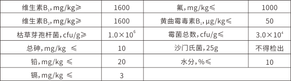【原料组成】硝酸硫胺(维生素B1)、核黄素(维生素B2)、枯草芽孢杆菌、载体膨润土